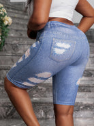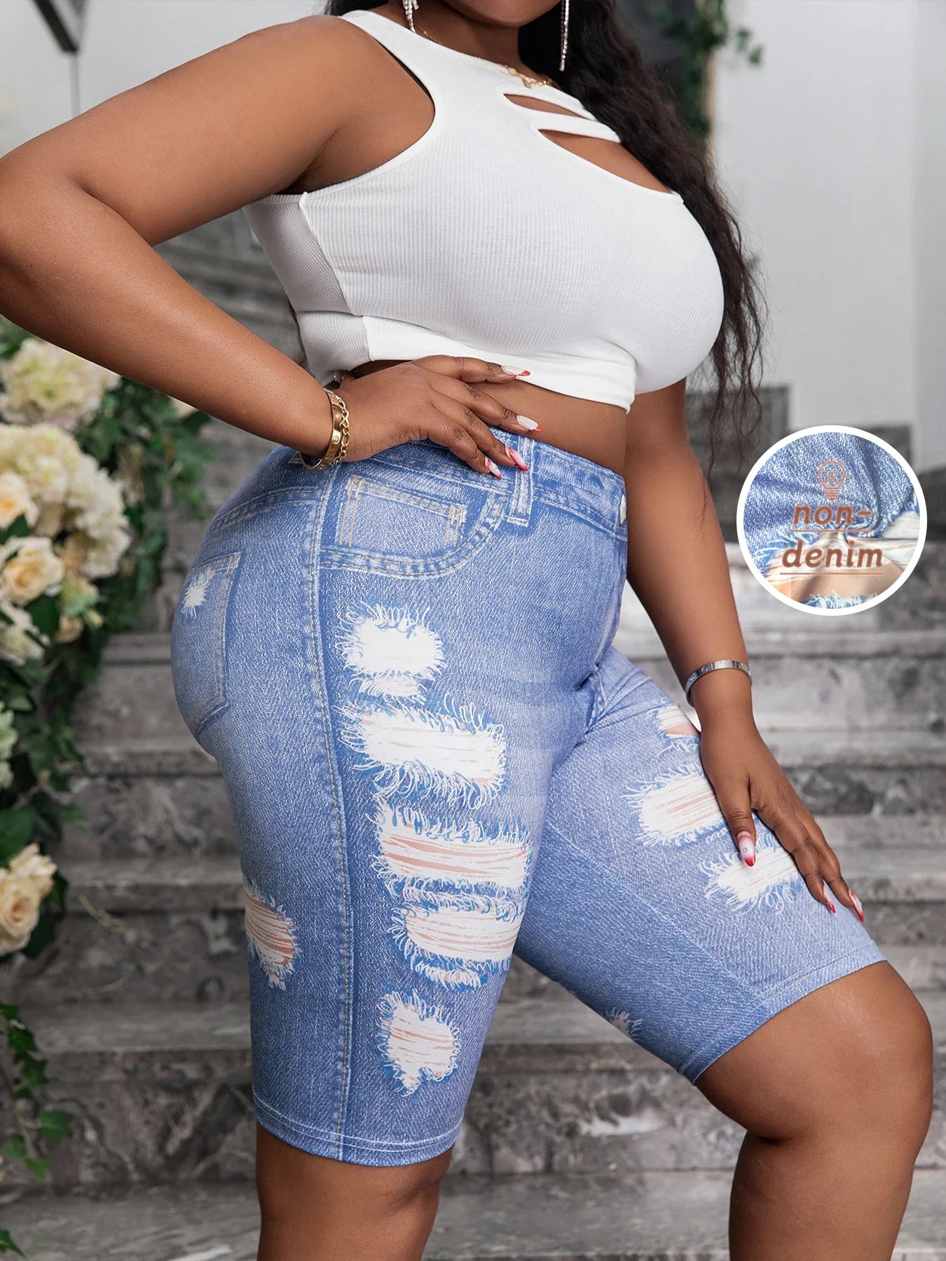 Women's Plus Size Fifth Pants Stretchy Shorts Comfortable Knit with Faux Denim Print Fashionable Mid-Length Sporty Leggings